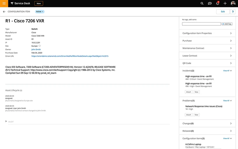 If your organization is already embedded in the SolarWinds suite, this provides a streamlined experience. You can feed monitoring, alerting, and configuration data directly into the CMDB, allowing for richer incident context and more effective change planning.