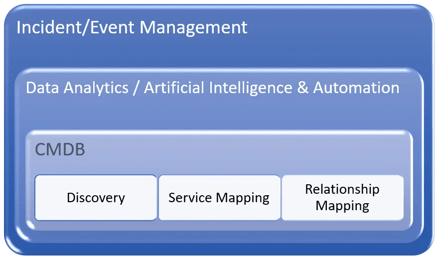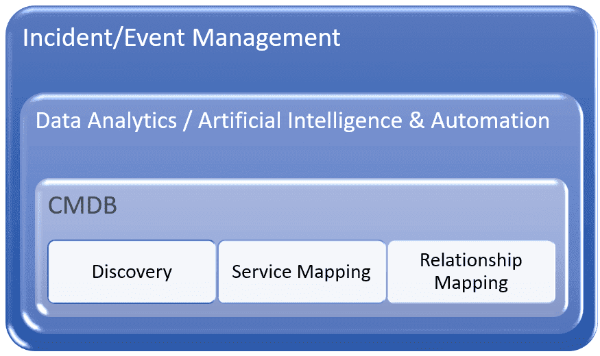 The reason for this is simple: when the success of an effort relies on data and trending information, the more data available in a single view, the more likely trends will be spotted early enough, so the proactive problem management process can address them. A CMDB constructed through automated Discovery and both service and relationship mapping form the foundation for understanding an operational environment. Incident and intelligent event management provides the historical data needed to enable data analytics tools and artificial intelligence to work with the CMDB to identify trends and potential fixes, while automation can implement these fixes anytime a trend indicates an incident could occur.