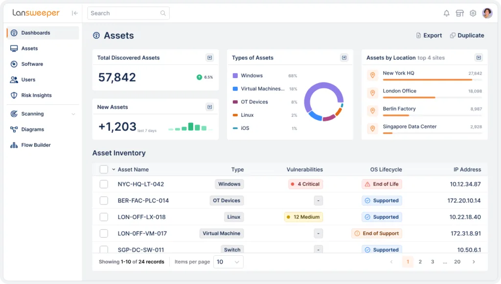 - NVD integration connects asset data to known vulnerabilities, helping security teams prioritize remediation by business impact