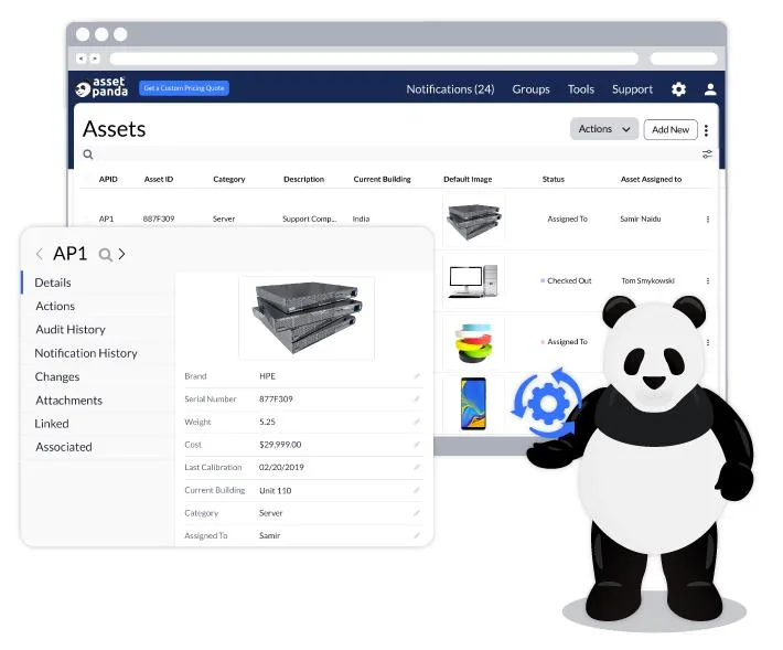 - Manage: Track every asset’s status from procurement to retirement with custom status tags, user/location linking, and contract associations