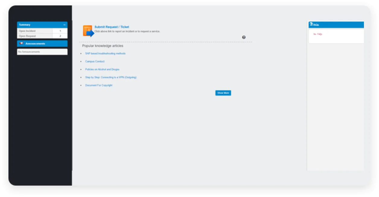 • Publish consumer facing knowledge articles to the Self-service portal to reduce the number of help desk requests