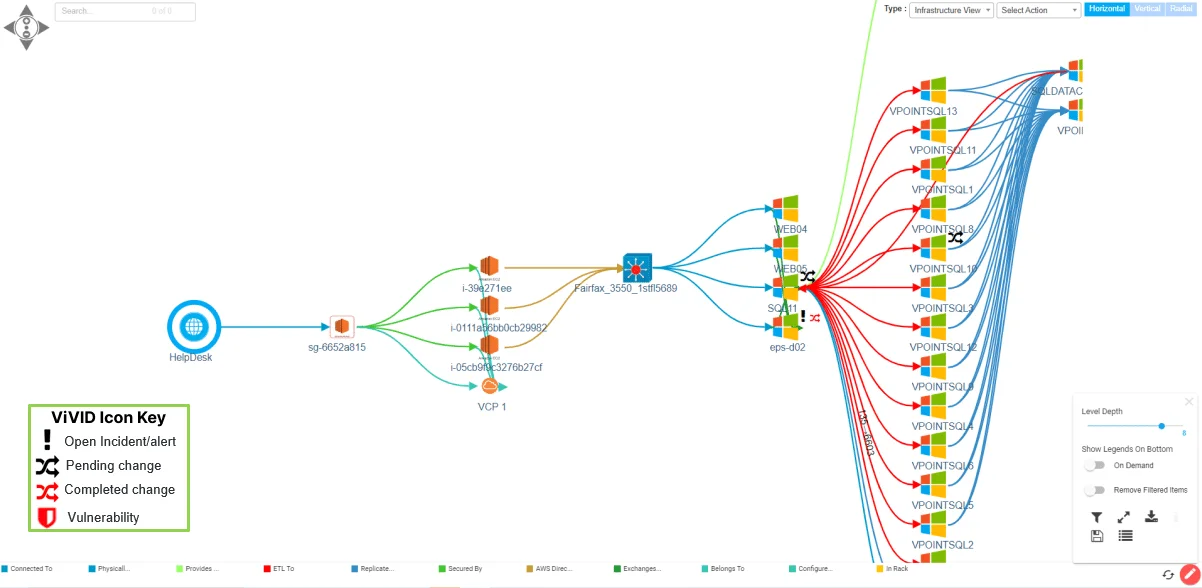 The ability to visualize the impact of proposed changes makes ViVID™ a powerful tool in change management. Use it to ensure planned changes won’t disrupt essential services.